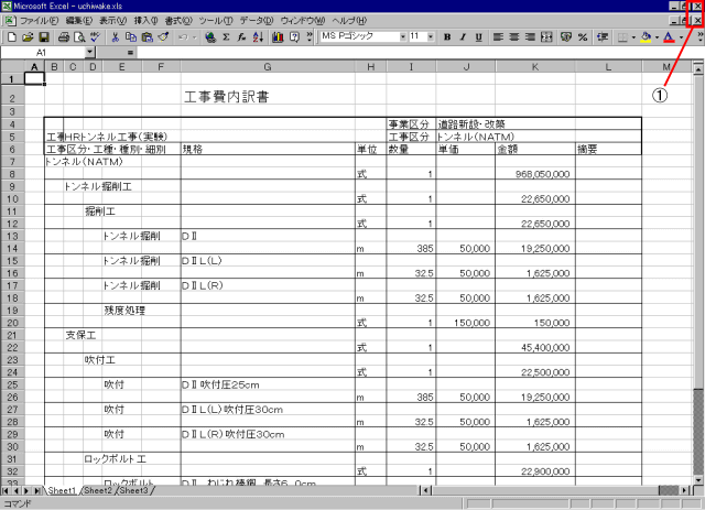 内訳書が表示されます。 確認後、右上の×ボタン@(2ヶ所)を押下します。 ※電子入札システムとは別に、Netscapeのブラウザが起動している場合があります。 その際は、確認後、不要なブラウザを閉じて下さい。
